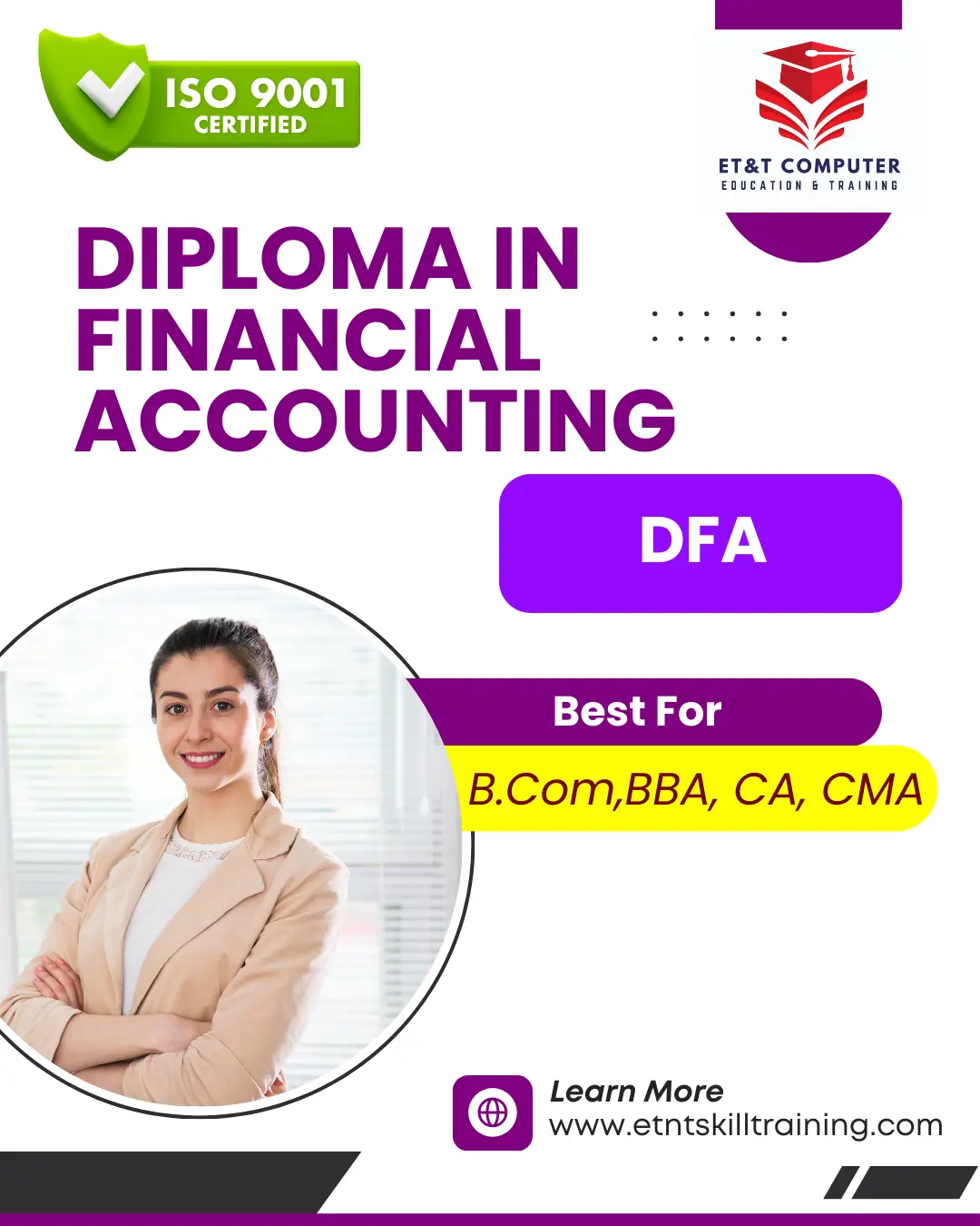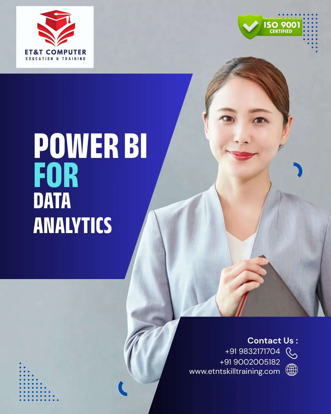 ET&T Computer Education & Training is a leading institute committed to excellence in computer education and professional skill development. Government of India Authorised, MSME Approved, and ISO 9001:2015 Certified, ET&T brings with it a strong legacy of 27 years of academic distinction and trusted training expertise. Since its inception, the institute has consistently focused on delivering high-quality, industry-oriented education that meets the evolving demands of the modern workforce. At ET&T, education is driven by innovation, practical exposure, and career relevance. Our programs are carefully designed to equip students, professionals, and corporate learners with cutting-edge technical knowledge, hands-on experience, and job-ready skills. We emphasize real-world applications, ensuring that learners gain confidence, competence, and the ability to perform effectively in competitive professional environments. Located at 2/4 Central Park, Doctor’s Colony, City Centre, Durgapur, West Bengal, near LifeCare Hospital and Bonolata, ET&T offers a dynamic learning environment supported by experienced faculty, modern infrastructure, and flexible learning modes. Our commitment to quality, integrity, and continuous improvement has made ET&T a trusted name in computer education across the region. With a strong focus on empowering individuals through skill-based education, ET&T Computer Education & Training continues to play a vital role in shaping successful careers and contributing to India’s growing skilled workforce. 📞 Contact: 9832171704 / 9002005182 ET&T – Empowering India with Skills Since 1999!